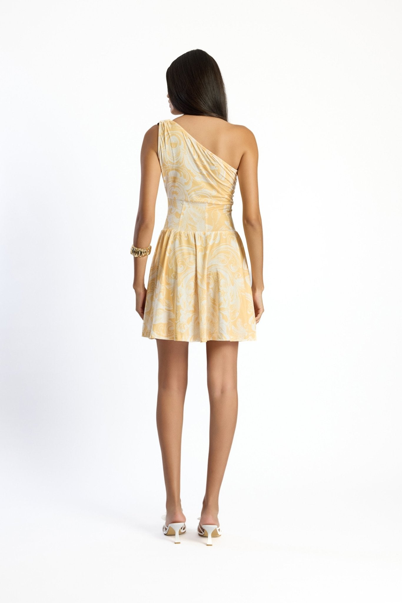 Tek omuz detayı ve dökümlü eteğiyle yaz davetlerinin favorisi olmaya aday Fleur elbise, zarif korse detayıyla vücut formunu vurgular.
